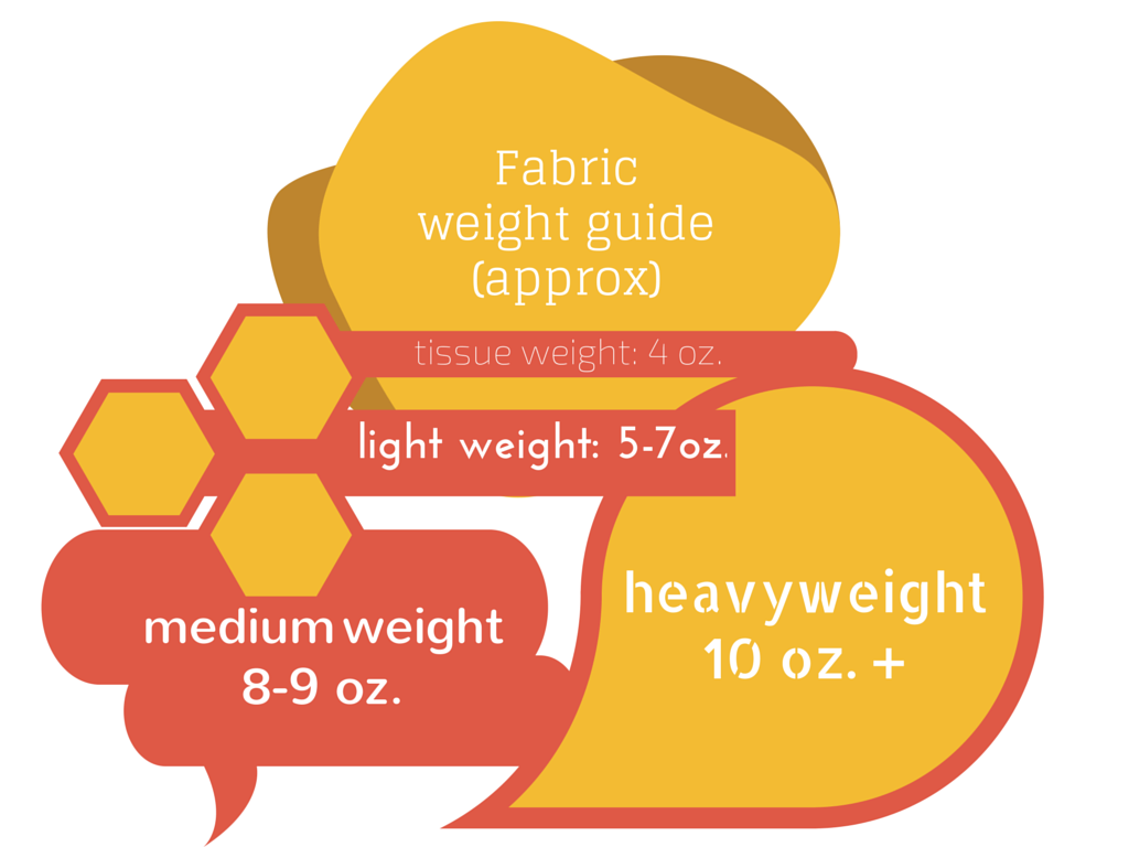 Weights will vary a lot because of fabric width, different weighing techniques etc… But here’s a starting point, use it as an approximate guide. It’s much more fun to look at color than black text so I laid it out here in a colorful way. JUST FOR YOU!